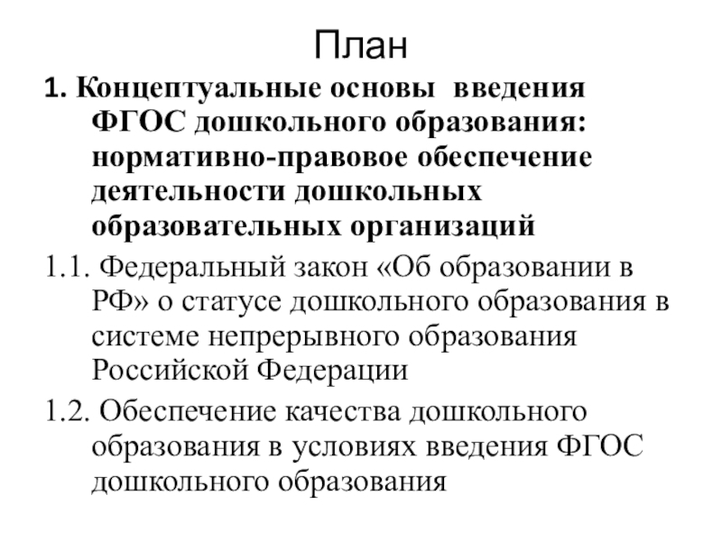 1. Концептуальные основы введения ФГОС дошкольного образования: нормативно-правовое обеспечение деятельности дошкольных