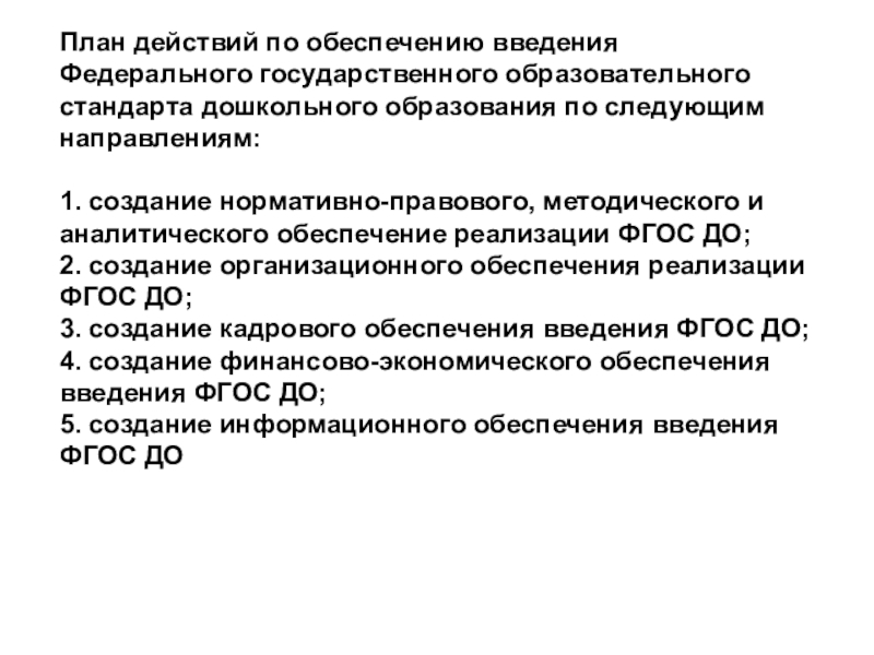 Слайд 13План действий по обеспечению введения Федерального государственного образовательного стандарта дошкольного образования