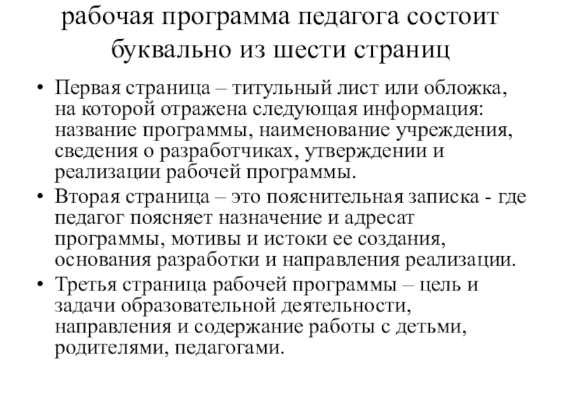 Слайд 100рабочая программа педагога состоит буквально из шести страниц