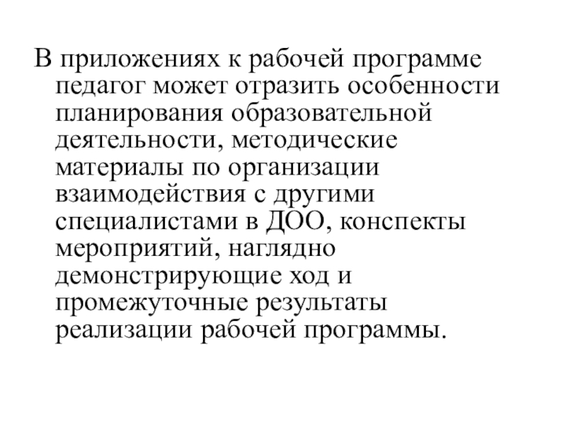 Слайд 102В приложениях к рабочей программе педагог может отразить особенности планирования образовательной
