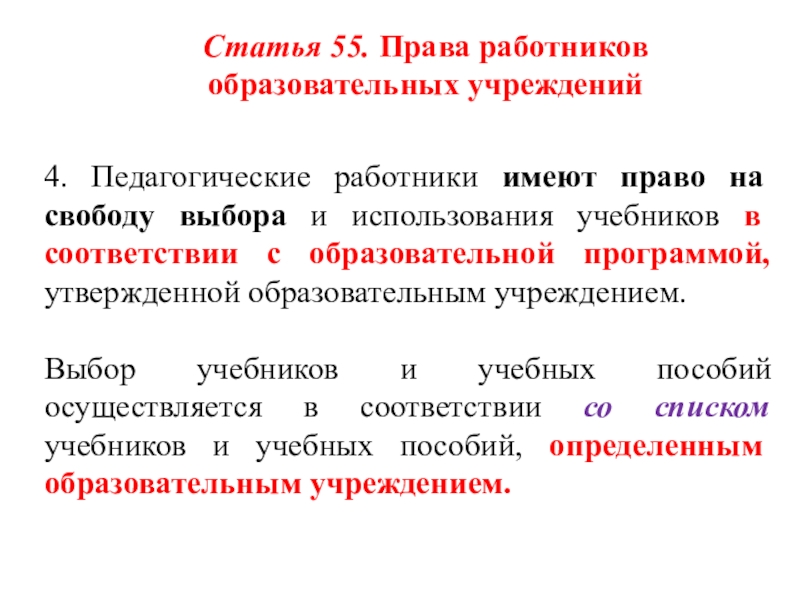 3. При принятии локальных нормативных актов, затрагивающих права обучающихся и работников образовательной организации, учитывается мнение советов обучающихся, советов родителей, представительных органов обучающихся, а также в порядке и в случаях, которые предусмотрены трудовым законодательством, представительных органов работников (при наличии таких представительных органов).