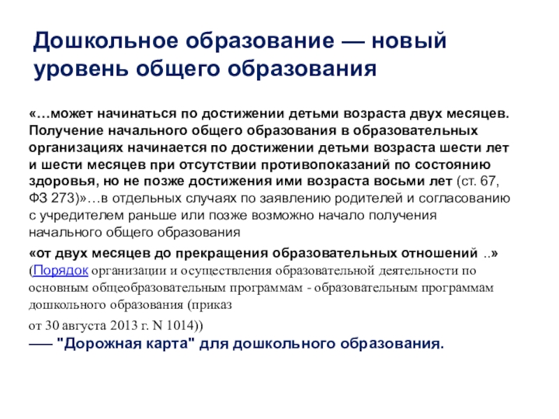 Слайд 6«…может начинаться по достижении детьми возраста двух месяцев. Получение начального общего