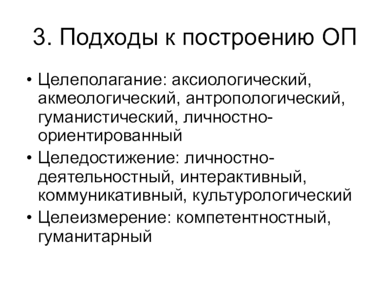 Целеполагание: аксиологический, акмеологический, антропологический, гуманистический, личностно-ориентированный
