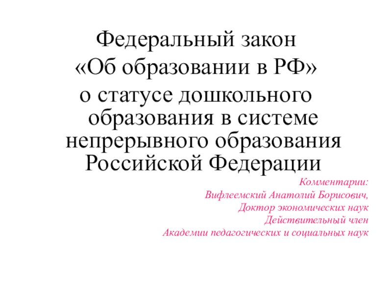 1.1. Федеральный закон «Об образовании в РФ» о статусе дошкольного образования в системе непрерывного образования Российской Федерации