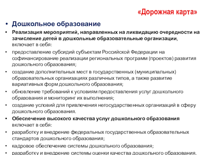 —– "Дорожная карта" для дошкольного образования.