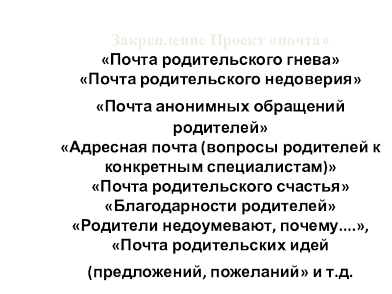 «Родители недоумевают, почему....», «Почта родительских идей (предложений, пожеланий» и т.д.