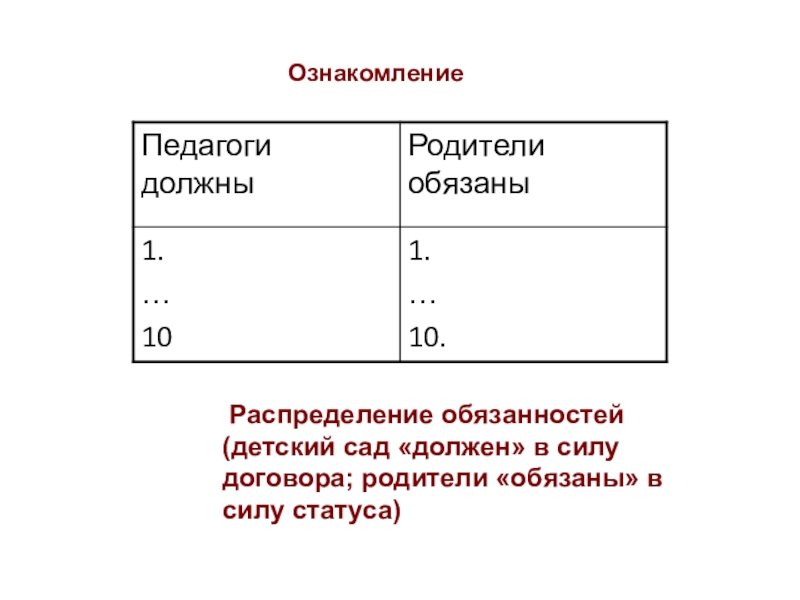 Распределение обязанностей (детский сад «должен» в силу договора; родители