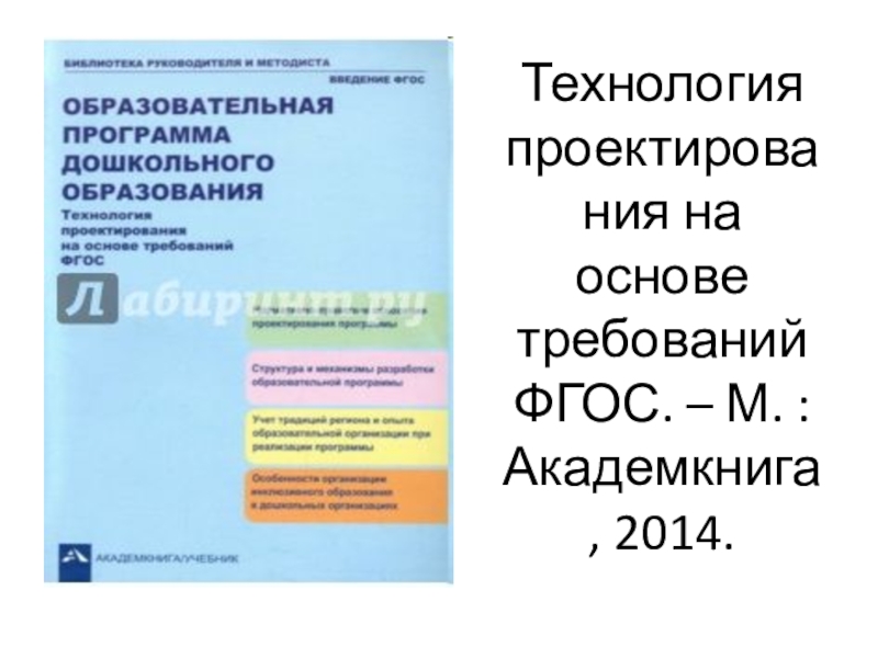 Слайд 14Технология проектирования на основе требований ФГОС. – М. : Академкнига, 2014.