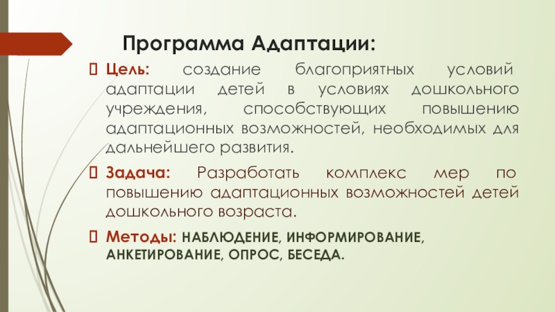 Задача: Разработать комплекс мер по повышению адаптационных возможностей детей дошкольного возраста.
