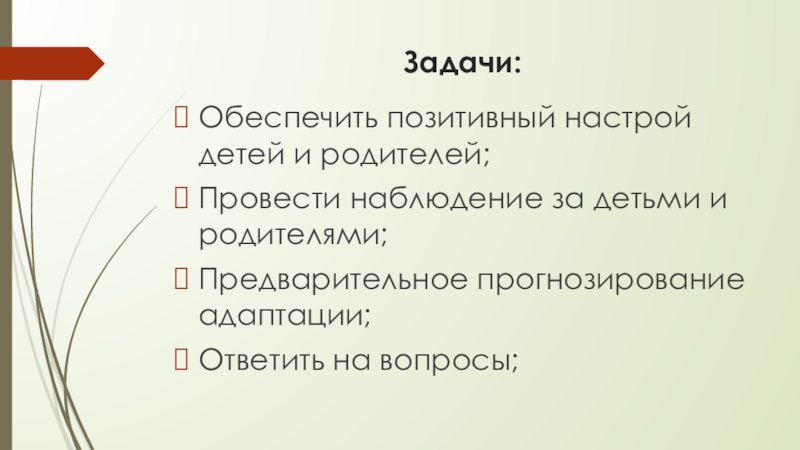 Цель: создание благоприятных условий адаптации детей в условиях дошкольного учреждения,