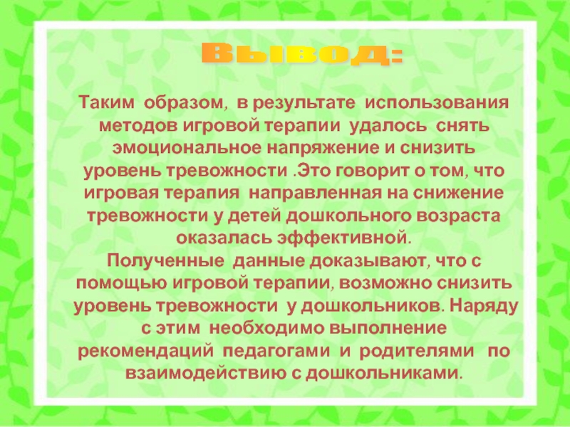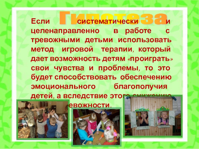 "Снижение личностной тревожности у детей старшего дошкольного возраста по средствам игровой терапии"