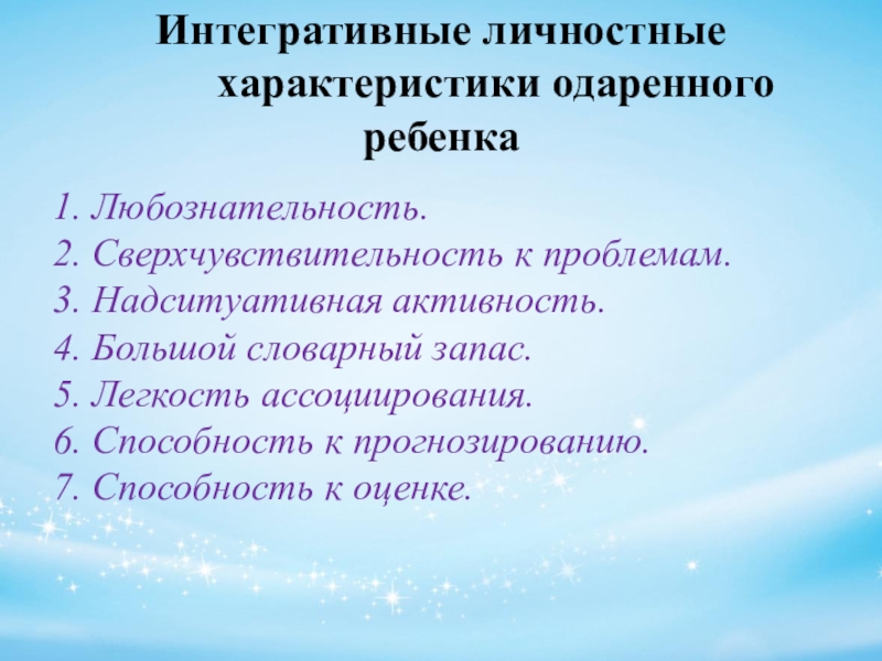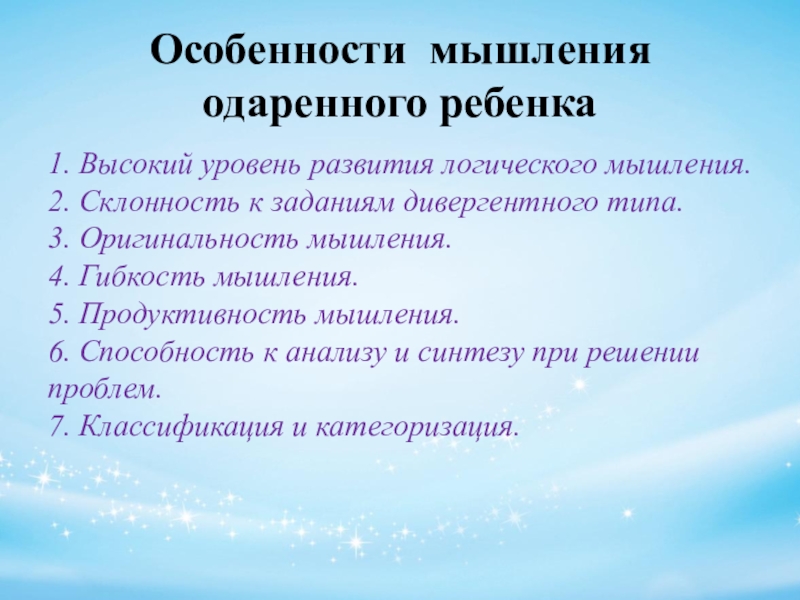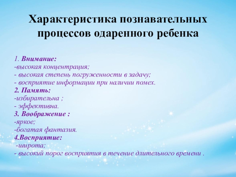 Слайд 9Характеристика познавательных процессов одаренного ребенка