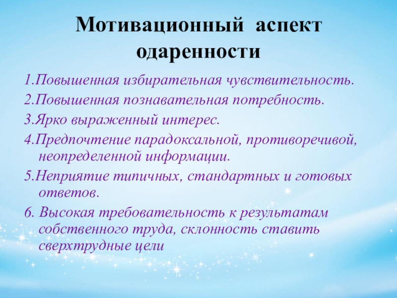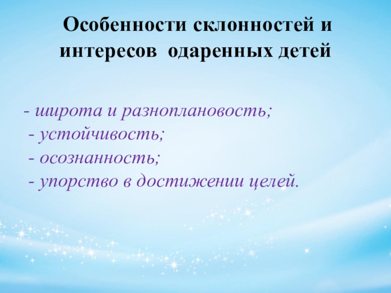 Слайд 13 Особенности склонностей и интересов одаренных детей