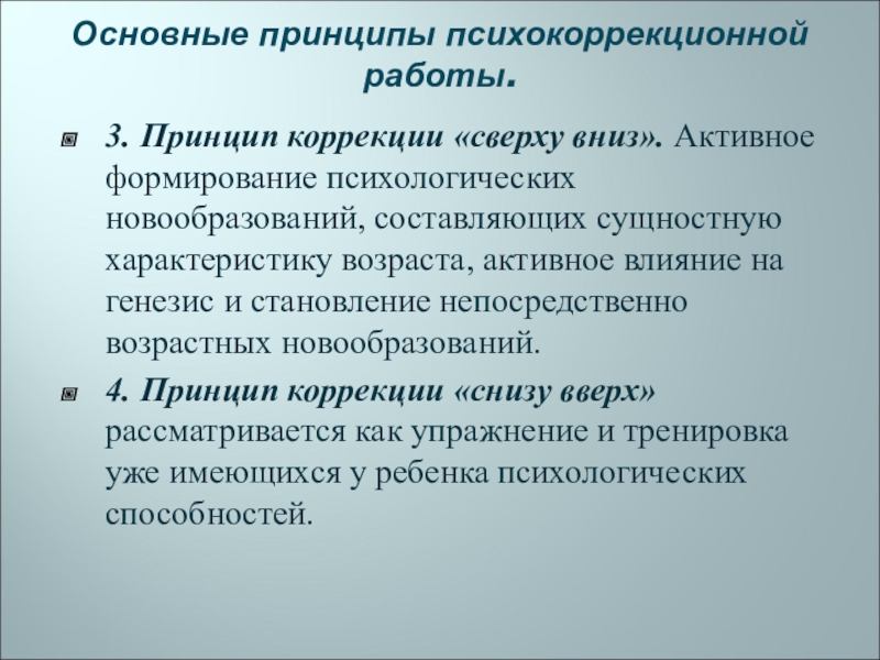 3. Принцип коррекции «сверху вниз». Активное формирование психологических новообразований,