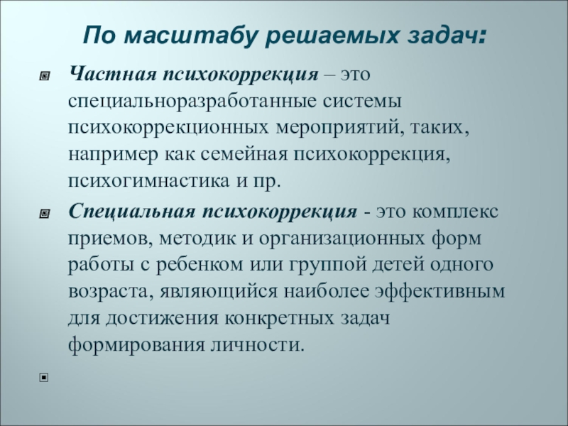 Частная психокоррекция – это специальноразработанные системы психокоррекционных