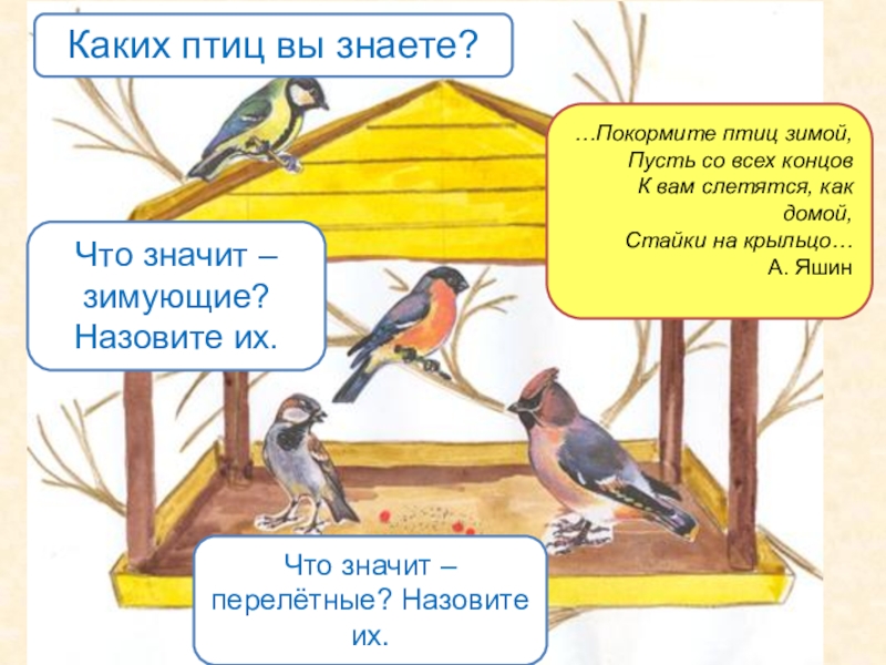 Что значит – зимующие? Назовите их.