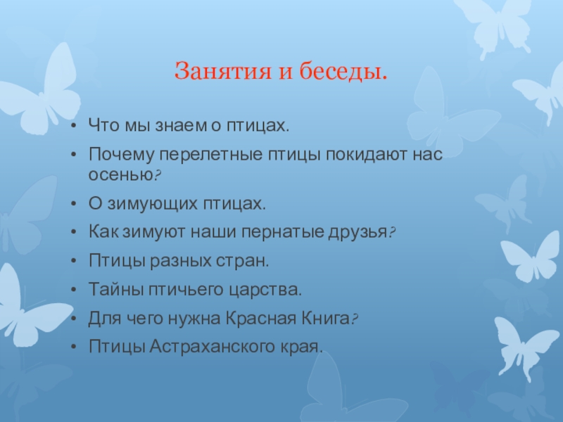 Слайд 11Занятия и беседы.
