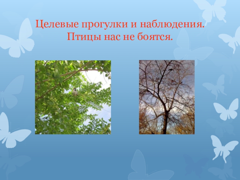Слайд 12Целевые прогулки и наблюдения. Птицы нас не боятся.