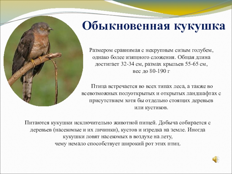 Питаются кукушки исключительно животной пищей. Добыча собирается с деревьев (насекомые и их личинки), кустов и изредка на земле. Иногда кукушки ловят насекомых в воздухе на лету,