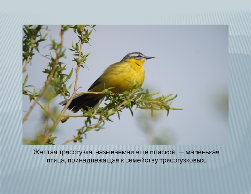 Слайд 8Желтая трясогузка, называемая еще плиской, — маленькая птица, принадлежащая к семейству