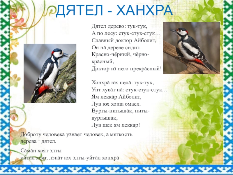 Доброту человека узнает человек, а мягкость дерева ‑ дятел.
