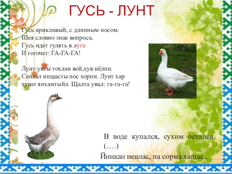 Алансахат унты олам ватсат: хоты лун ёхтас, эплан сывапса энмал.