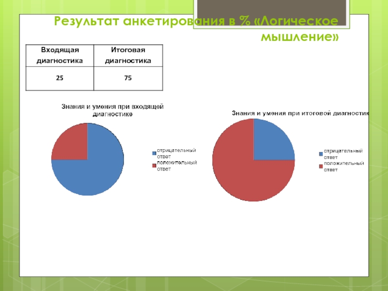 Результат анкетирования в % «Логическое мышление»