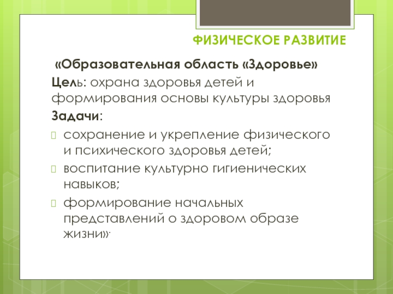 Слайд 12 «Образовательная область «Здоровье»