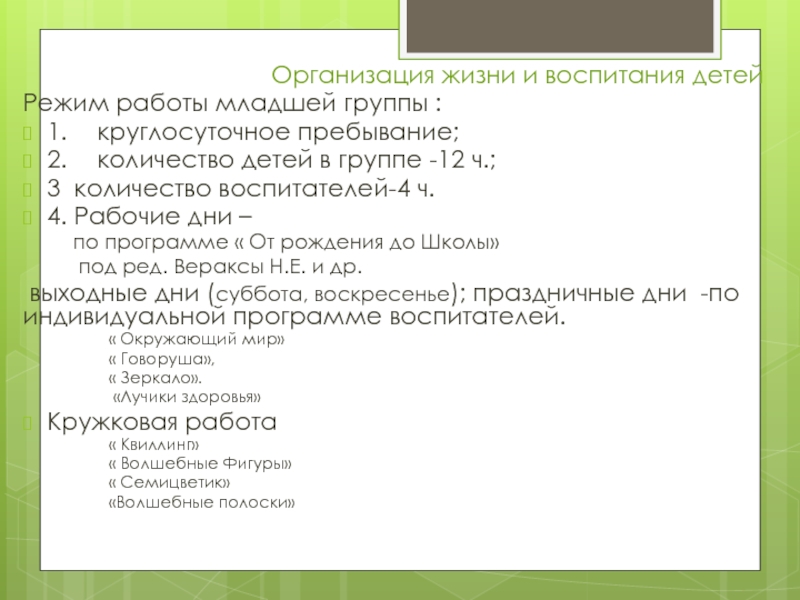 Слайд 2Организация жизни и воспитания детей