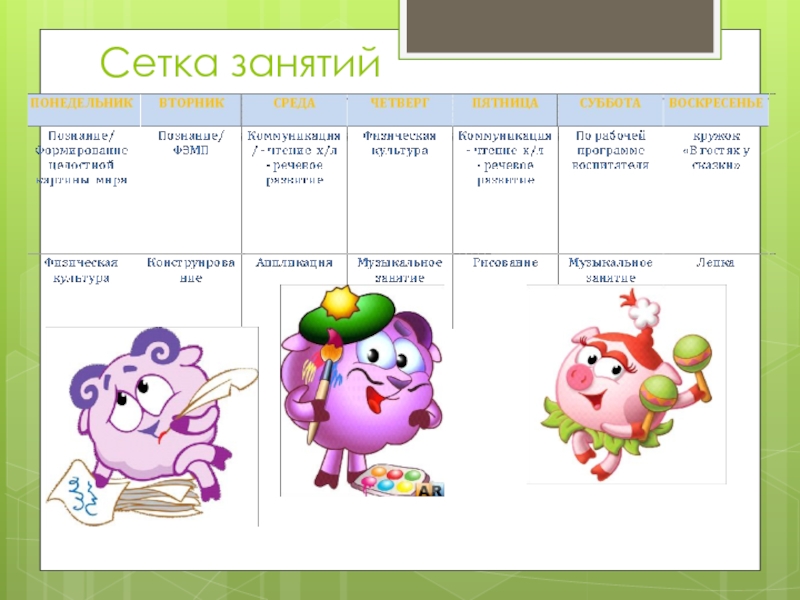 планируют не более 10 занятий в неделю продолжительностью 15 -20 минут (СанПиН 2.4.1.1249-03)