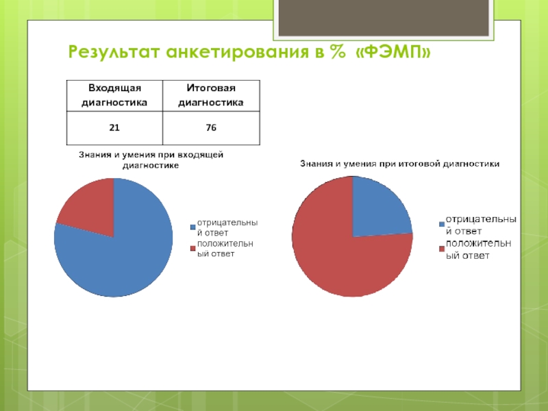 Слайд 46Результат анкетирования в % «ФЭМП»