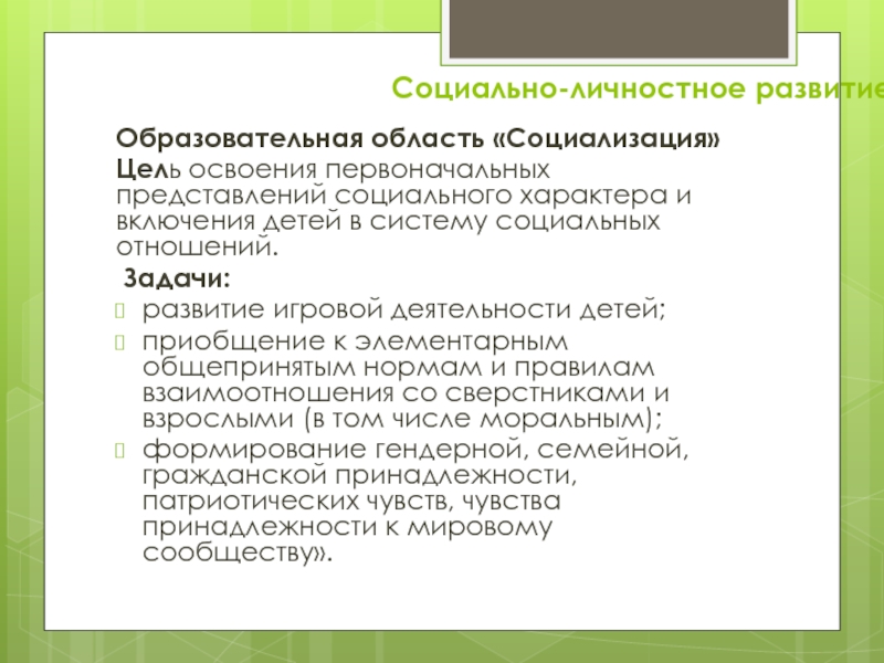 Образовательная область «Социализация»