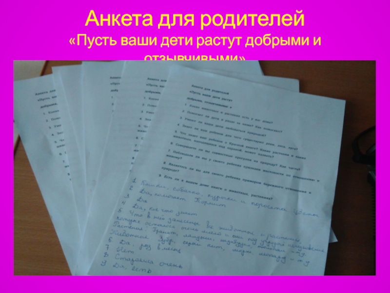 Слайд 22Анкета для родителей «Пусть ваши дети растут добрыми и отзывчивыми»