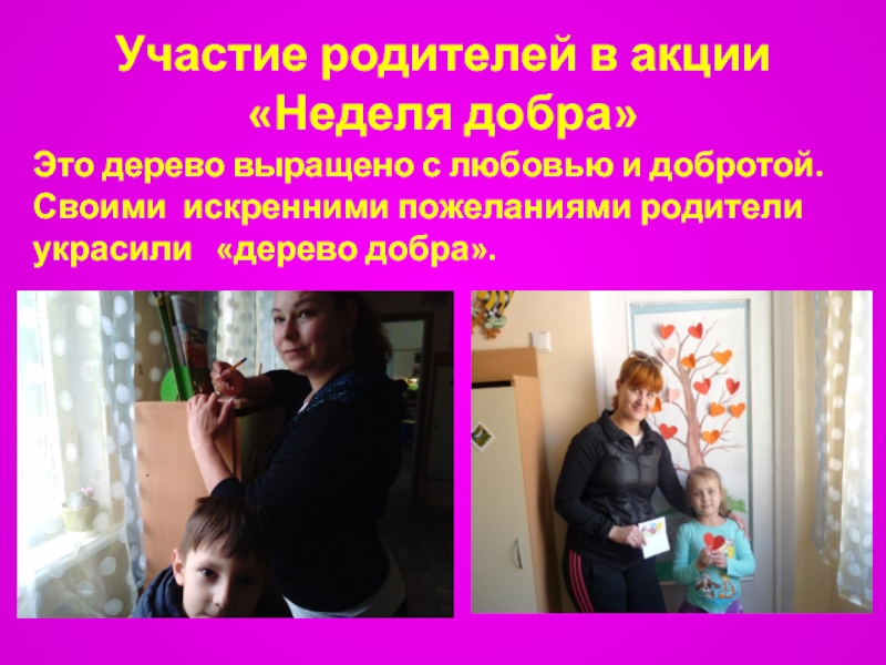 Участие родителей в акции «Неделя добра»Это дерево выращено с любовью и добротой. Своими искренними пожеланиями родители украсили