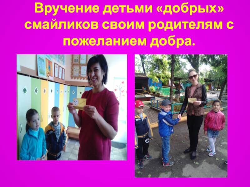 Слайд 4Вручение детьми «добрых» смайликов своим родителям с пожеланием добра.