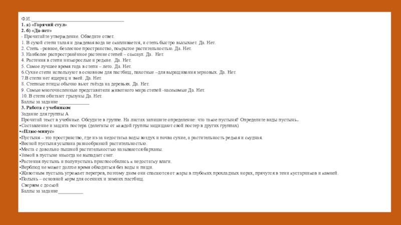 Прочитай текст в учебнике. Обсудите в группе. На листах запишите определение: что такое пустыня? Определите виды пустынь.