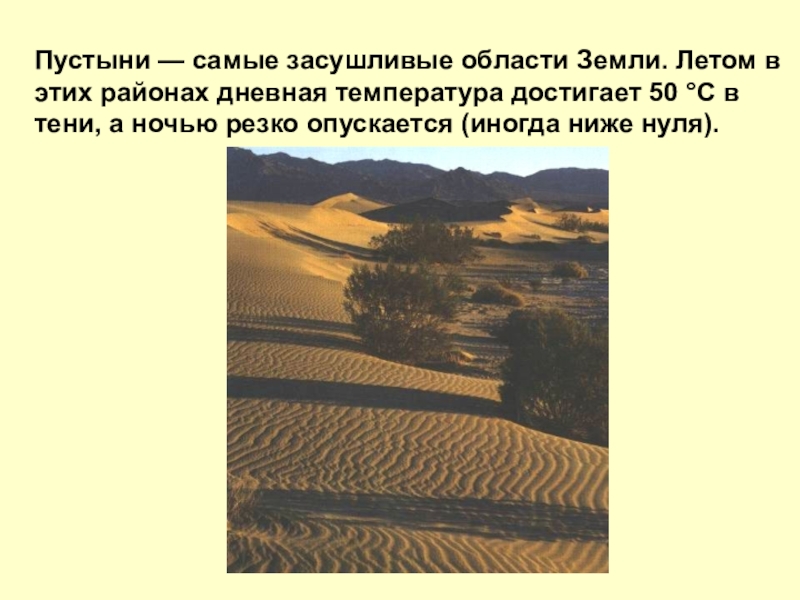 Некоторые пустыни люди сумели превратить в плодородные земли. Но большинство пустынь остается сухими, потому что вода слишком далеко.