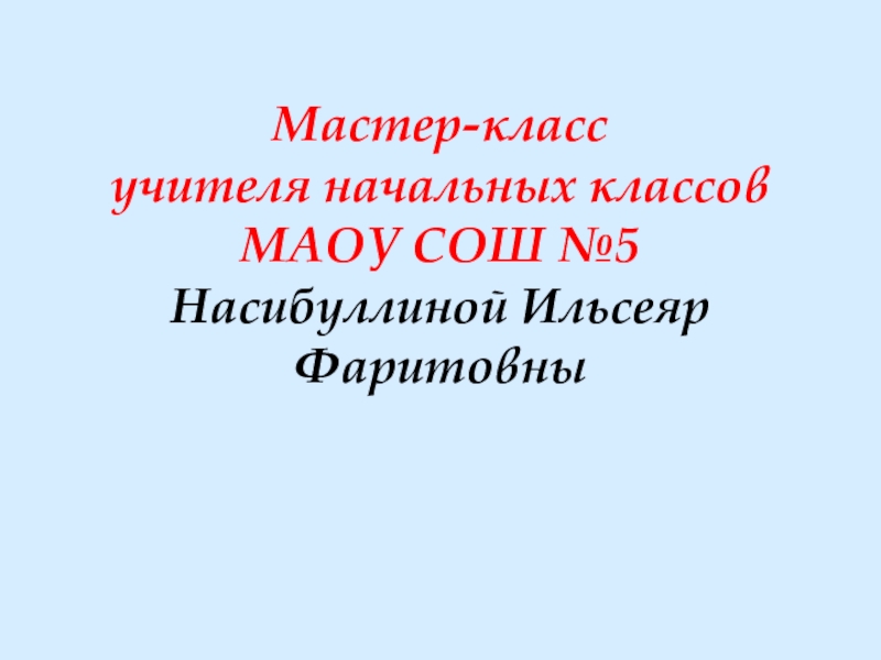 Слайд 1Мастер-класс учителя начальных классов МАОУ СОШ №5 Насибуллиной Ильсеяр Фаритовны