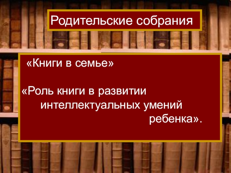 Родительские собрания  «Книги в семье»«Роль книги в развитии    интеллектуальных умений