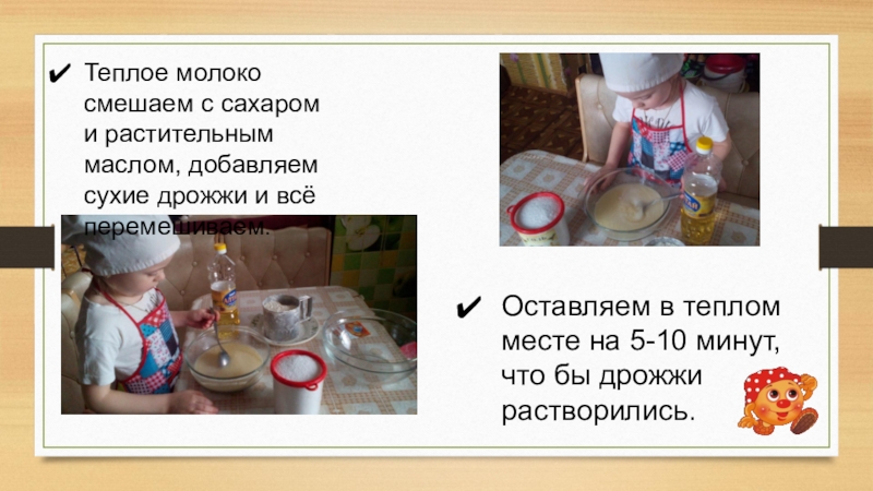 Оставляем в теплом месте на 5-10 минут, что бы дрожжи растворились.