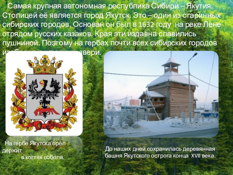 До наших дней сохранилась деревянная башня Якутского острога конца XVII века.
