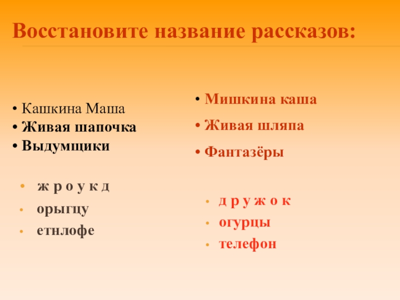 Восстановите название рассказов: