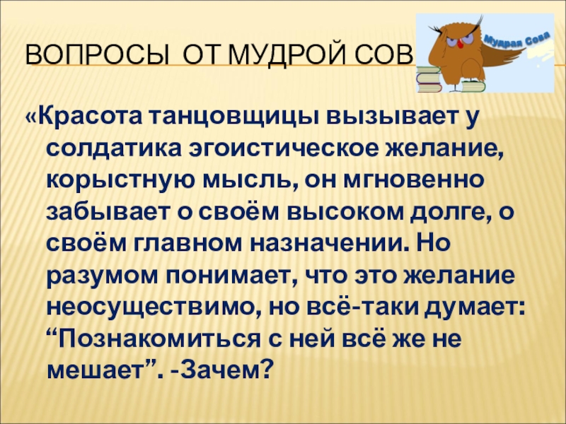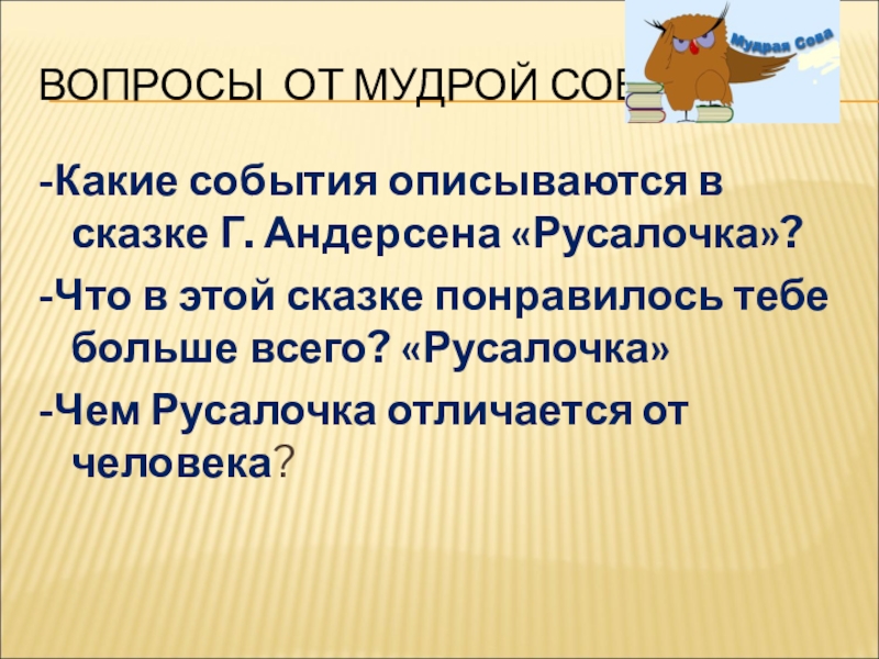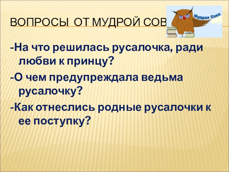 Слайд 26ВОПРОСЫ ОТ МУДРОЙ СОВЫ