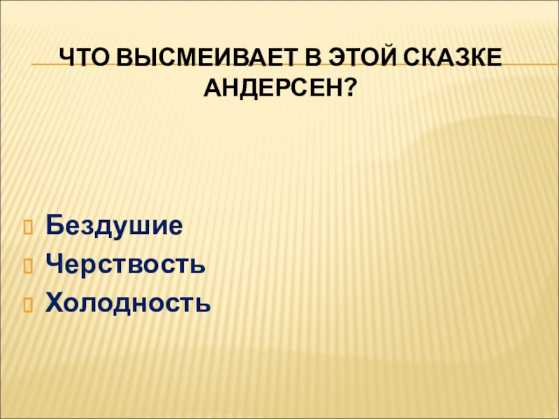 Слайд 15ЧТО ВЫСМЕИВАЕТ В ЭТОЙ СКАЗКЕ АНДЕРСЕН?