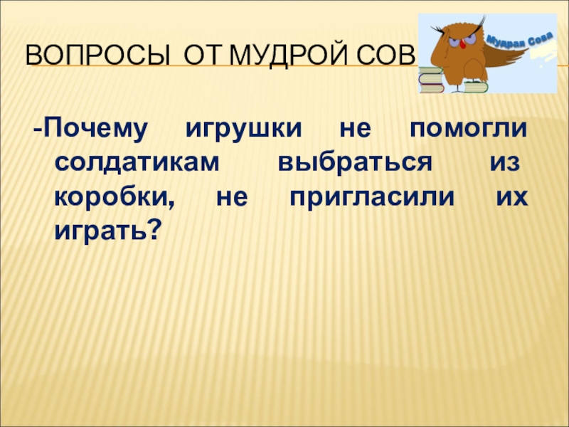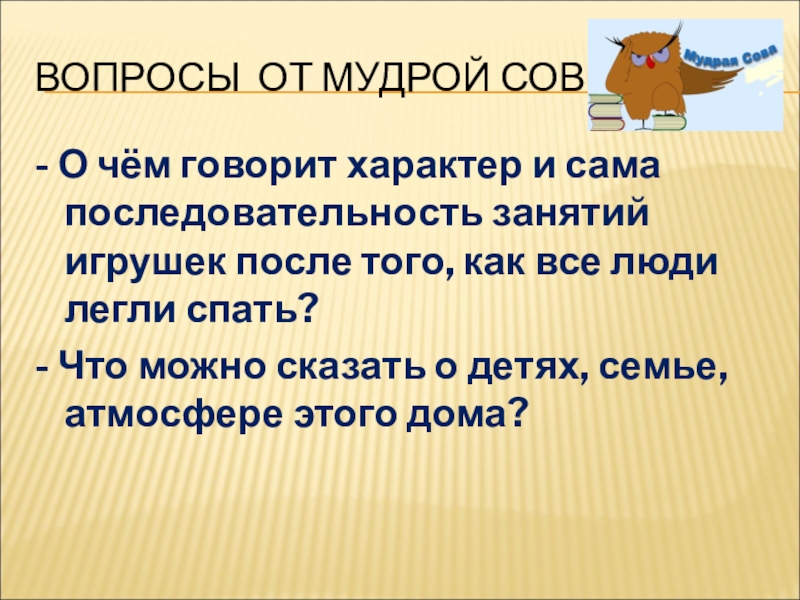 Слайд 37ВОПРОСЫ ОТ МУДРОЙ СОВЫ