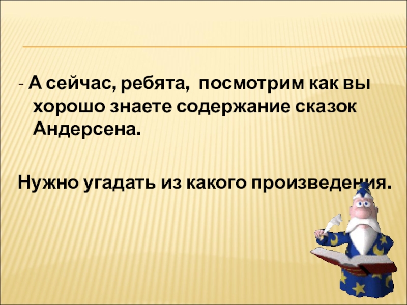 - А сейчас, ребята, посмотрим как вы хорошо знаете содержание сказок