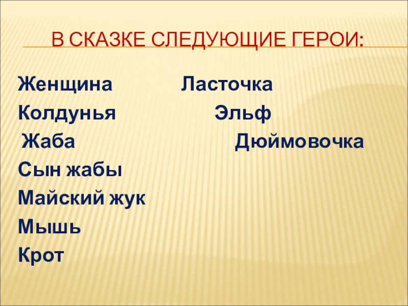 Слайд 34В СКАЗКЕ СЛЕДУЮЩИЕ ГЕРОИ: