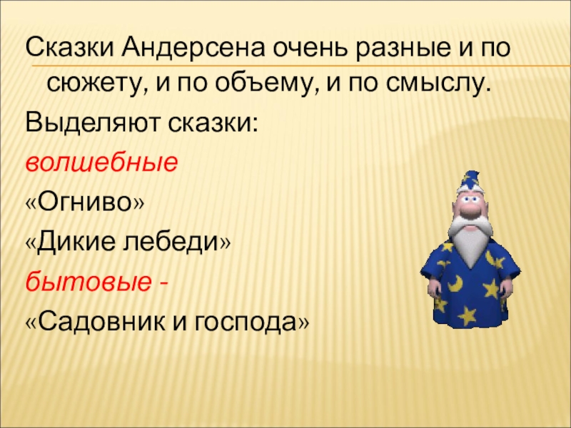 Сказки Андерсена очень разные и по сюжету, и по объему, и