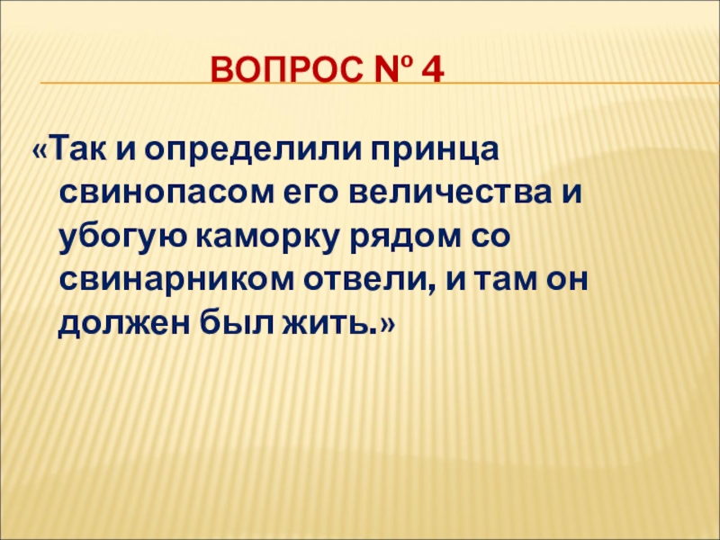 «Так и определили принца свинопасом его величества и убогую каморку рядом со свинарником отвели, и там он должен был жить.»