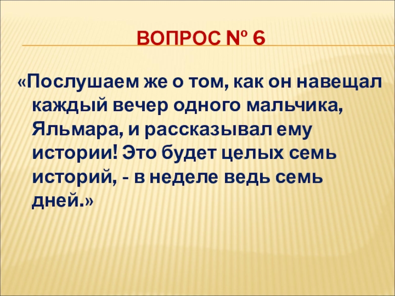 одного мальчика, Яльмара, и рассказывал ему истории! Это будет целых семь историй, - в неделе ведь семь дней.»
